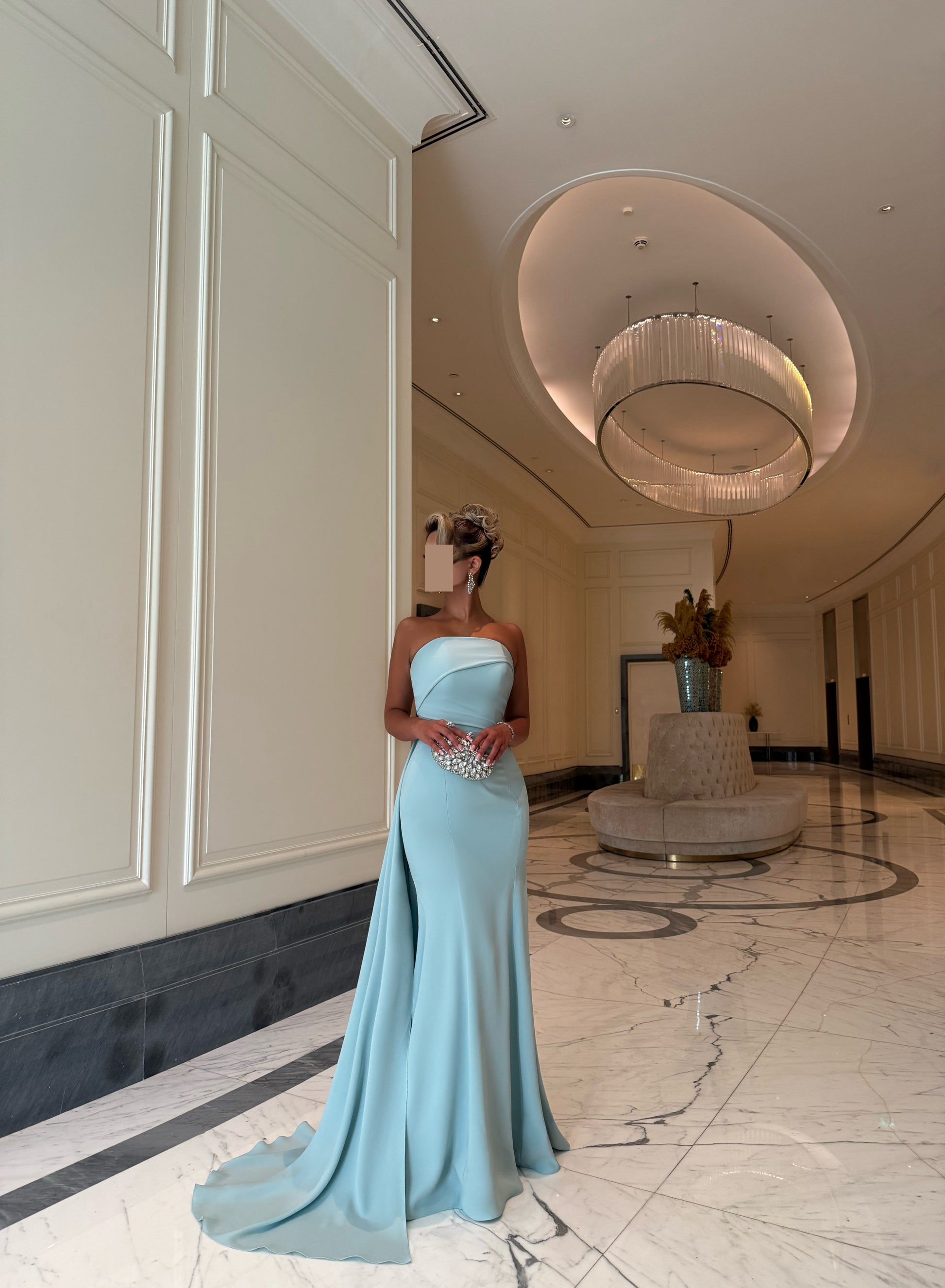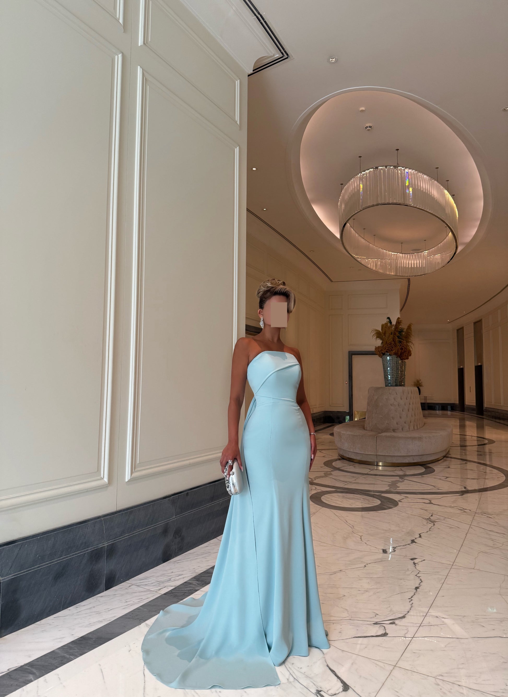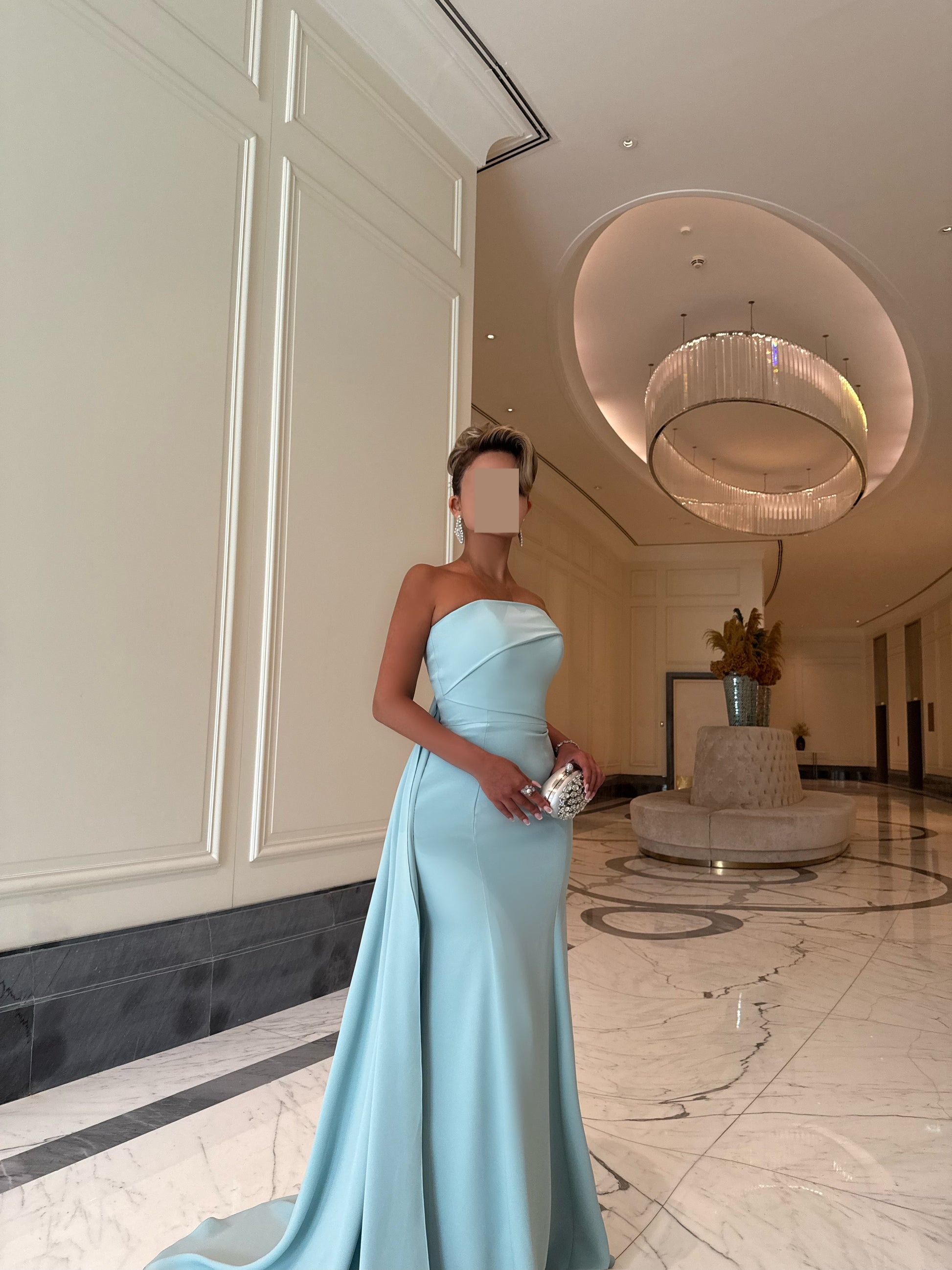 LIGHT TIFFANY ASYMMETRIC TUBE DRESS WITH TRAIL
