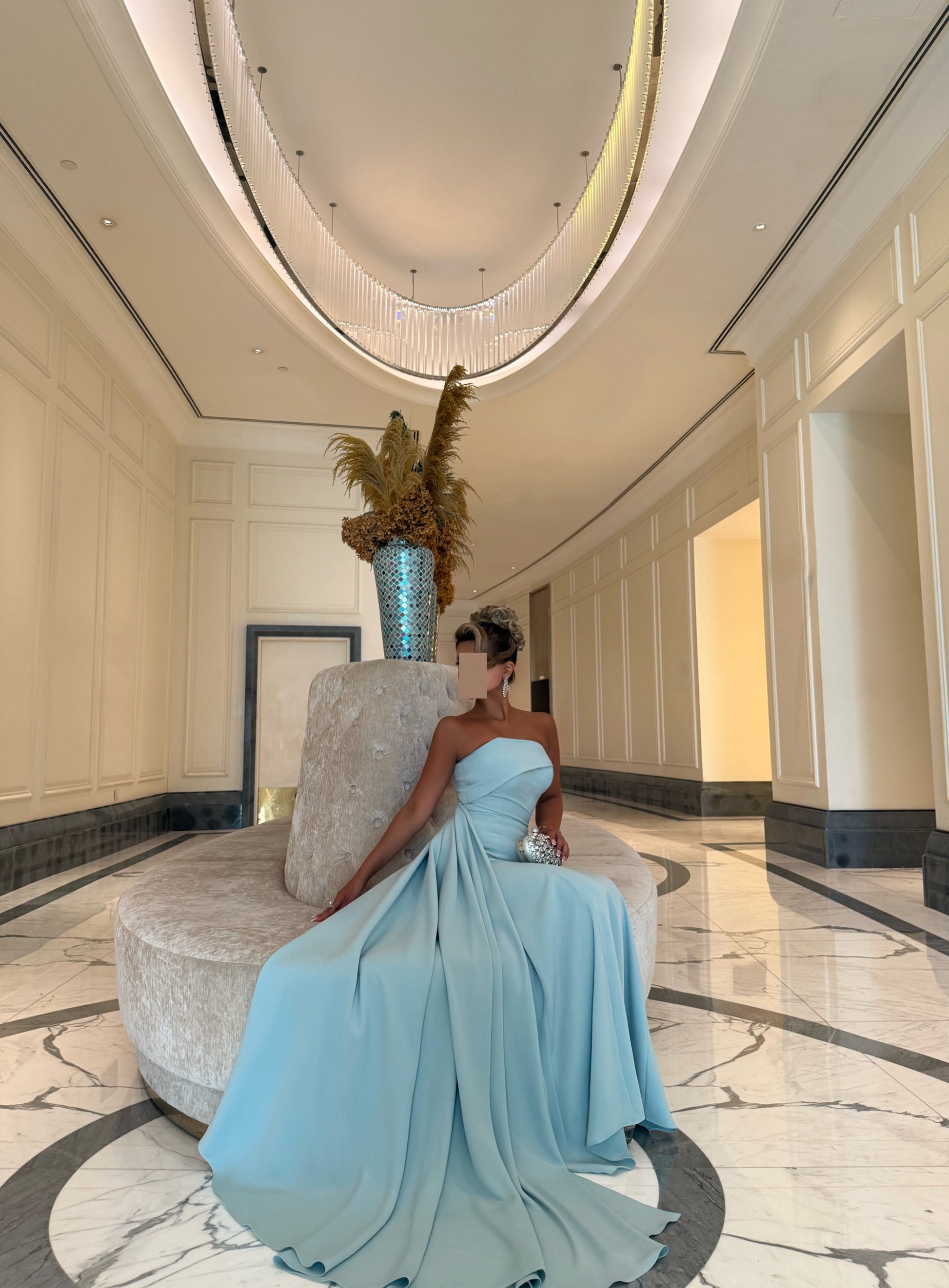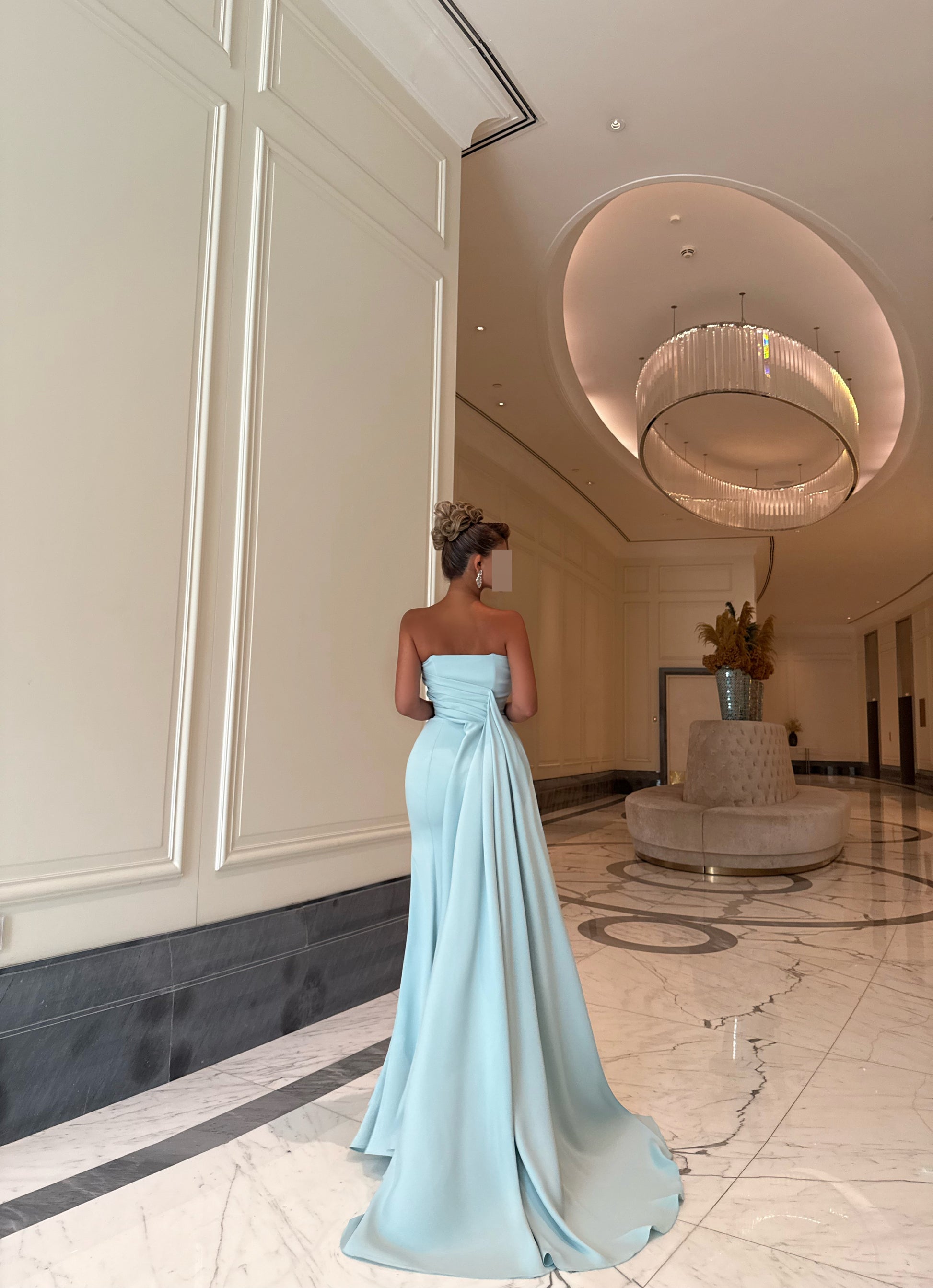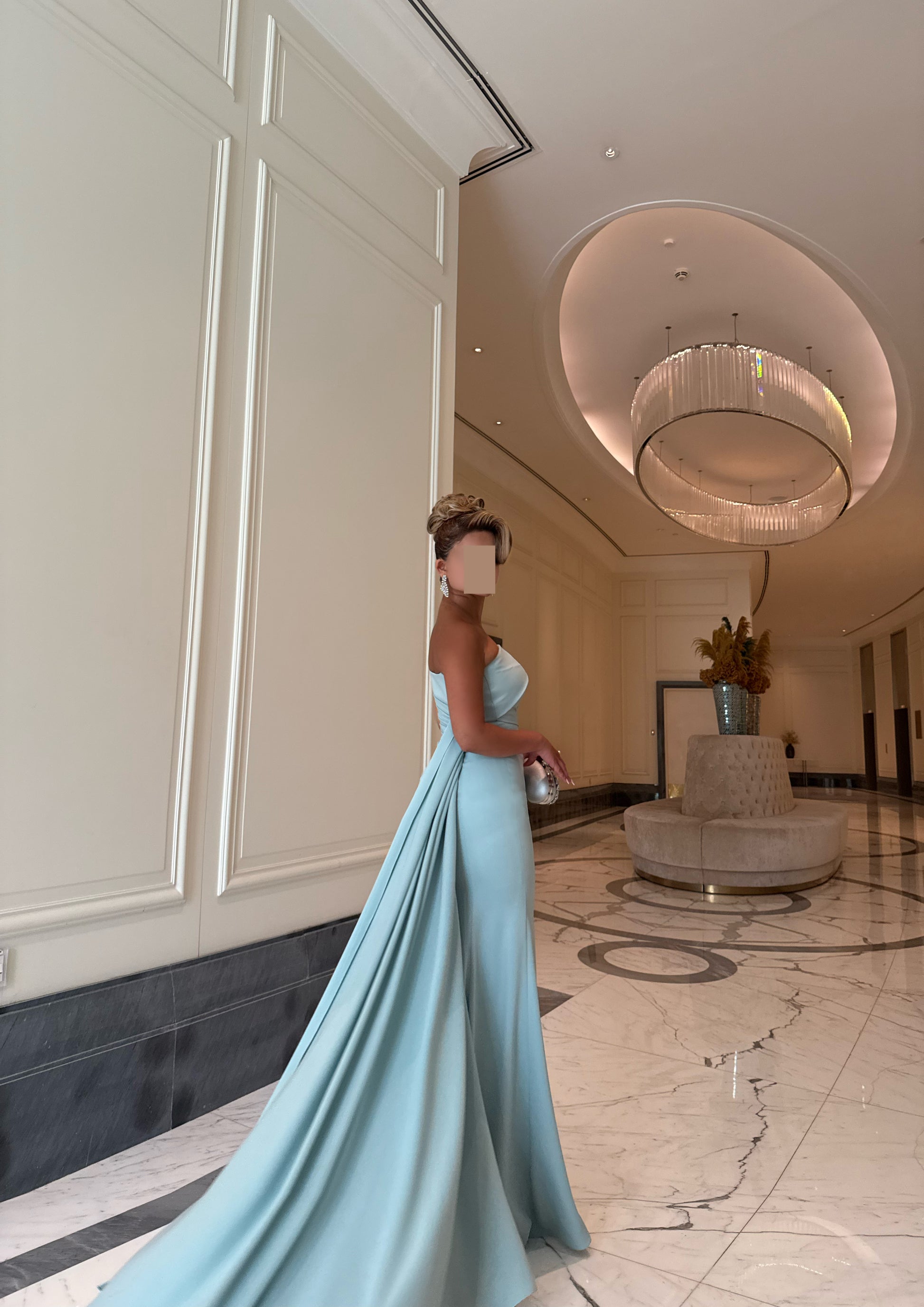 LIGHT TIFFANY ASYMMETRIC TUBE DRESS WITH TRAIL
